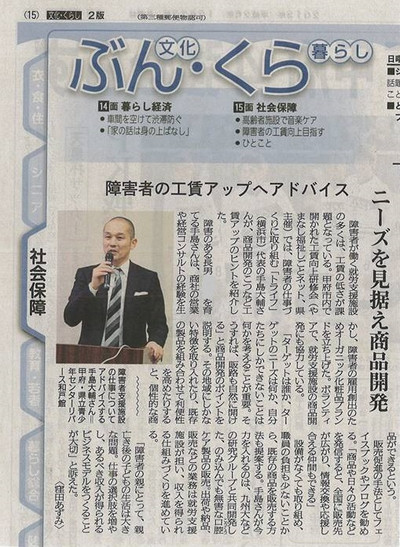 「先日、山梨県は甲府で行われた障がい者就労施設向けの研修についての記事が、山梨日日新聞に掲載されました。